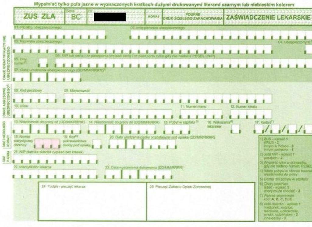 Od 1 stycznia 2018 r. jedyną obowiązującą formą zaświadczenia lekarskiego, dokumentującego czasową niezdolność do pracy z powodu choroby, pobytu w szpitalu albo konieczności osobistego sprawowania opieki nad chorym członkiem rodziny będzie: