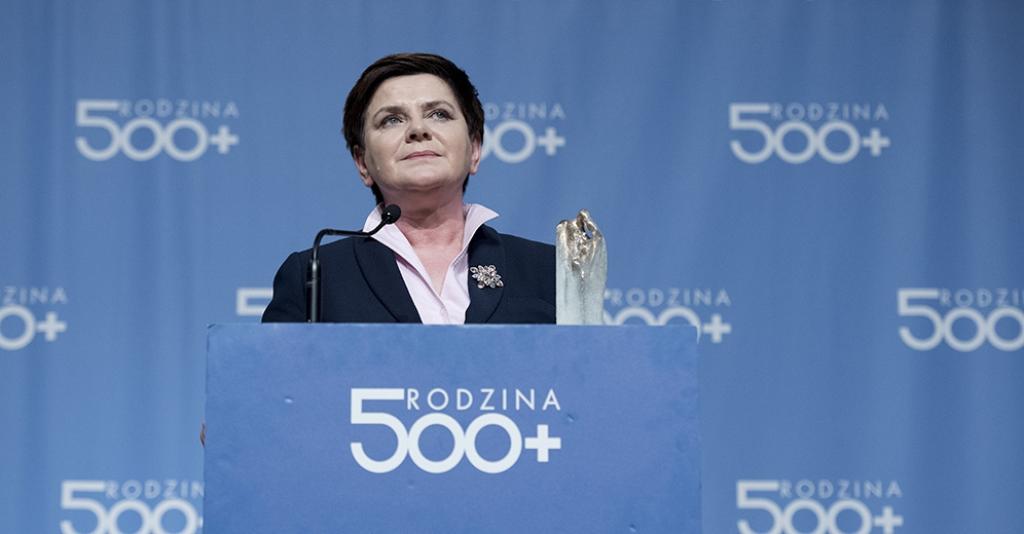 Szefowa rządu w podziękowaniu za program Rodzina 500+ otrzymała statuetkę od Związku Dużych Rodzin „Trzy Plus”. To jest najpiękniejsze wyróżnienie jakie otrzymałam w swojej pracy, w swoim życiu – mówiła premier. Jak podkreśliła przygotowanie i wprowadzenie programu Rodzina 500+ to zasługa wielu ludzi. Szczególne podziękowania premier Beata Szydło skierowała do minister Elżbiety Rafalskiej, która wraz z całym zespołem z Ministerstwa Rodziny, Pracy i Polityki Społecznej szybko przygotowała i wdrożyła ten projekt. Poinformowała przy tym, że obecnie złożono 2,5 mln wniosków i ruszyły już pierwsze wypłaty pieniędzy z programu Rodzina 500+. Premier podziękowała również za zaangażowanie minister cyfryzacji Annie Streżyńskiej oraz szefowi resortu finansów. Minister Szałamacha znalazł w budżecie potrzebne 20 mld zł na wprowadzenie projektu w tym roku – podkreślała.